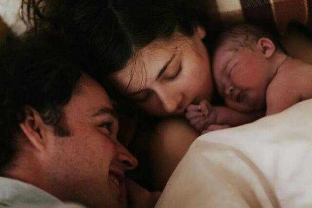 He kissed her forehead—soft, reverent—and placed their son gently into her arms.
